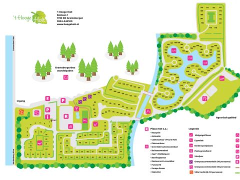 Le parc de vacances de 't Hooge Holt propose un grand choix d'activités de loisirs pour tous les âges. Les amateurs de sport peuvent se défouler sur les courts de tennis, le terrain de football ou au mini-golf. Ceux qui souhaitent profiter de la nature peuvent louer un vélo et explorer les envir... Lire la suite