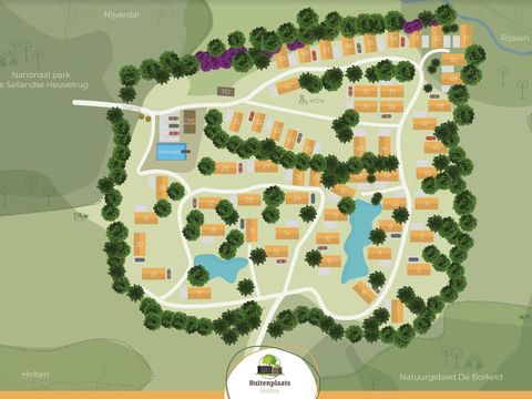 Vakantiepark Hölte est situé au pied du Sallandse Heuvelrug, à la frontière entre Twente et Salland. Ce parc est idéal pour les personnes qui aiment le calme, l'espace et le confort dans un environnement naturel. Le parc est vaste et plein d'ambiance, avec un grand étang, des fleurs et des plantes.