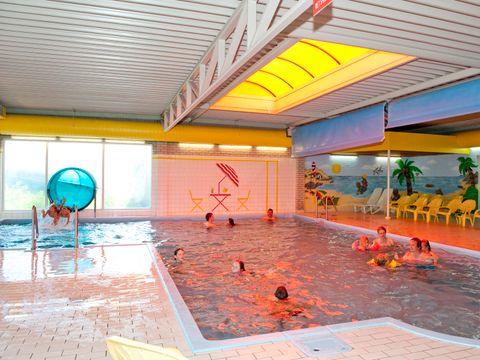 Venez profiter de la piscine couverte chauffée avec pataugeoire et sauna ainsi que d'une piscine extérieure non chauffée avec toboggan et bain bouillonnant.