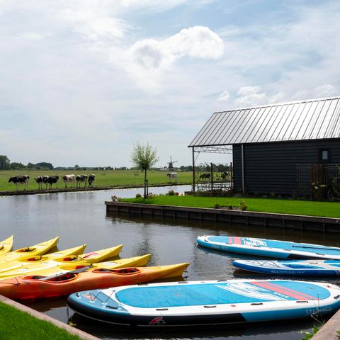 Le parc offre diverses facilités. Les hôtes peuvent nager et pêcher dans l'eau autour de l'hébergement, bien qu'un permis de pêche soit nécessaire. Des canoës et des planches à voile peuvent être loués pour explorer les eaux des polders adjacents, ainsi que des bateaux électriques à sifflet pouvant accueillir jusqu'à huit personnes. Des vélos électriques peuvent également être loués sur place, ce qui permet d'explorer facilement les environs à vélo.
