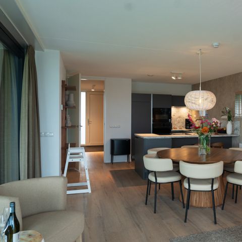 - L'appartement dispose d'un séjour spacieux et lumineux, d'une télévision avec Chromecast et de portes coulissantes donnant sur un balcon (environ 14 m2) ou un joli jardin au rez-de-chaussée.