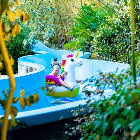 Aquapark 4 piscines dont 1 couverte (la piscine couverte est ouverte jusqu'à la fin de saison) Rainbow Splash Toboggan aquatique quadruple : 4 vitesses Toboggan de 45 mètres: Crazy River