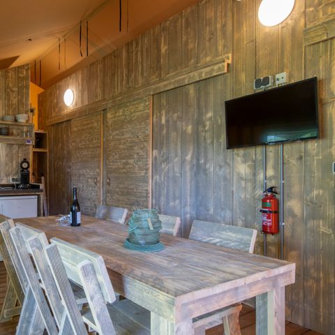 Veuillez noter que l'intérieur et l'extérieur peuvent différer des photos dans la réalité. Les photos sont une indication de ce à quoi vous pouvez vous attendre dans le parc. Il est donc possible que l'ameublement et l'apparence du chalet qui vous est attribué diffèrent de ceux présentés sur les photos.
