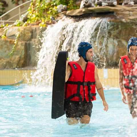 La piscine Aquafun est le cœur du Sunparks Kempense Meren et garantit de nombreux plaisirs aquatiques. La piscine à vagues donne une véritable sensation de mer à la piscine couverte, tandis que plusieurs toboggans aquatiques procurent des sensations fortes. Le long toboggan tubulaire, sur lequel tu peux t'élancer dans l'eau avec tes enfants, est particulièrement apprécié. Pour les plus jeunes, il y a une pataugeoire séparée avec des jeux d'eau colorés, parfaits pour patauger en toute sécurité. L'aménagement tropical avec des palmiers et des températures chaudes donne un véritable sentiment de vacances, quelle que soit la saison. Ceux qui souhaitent s'accorder une pause après l'action et le divertissement peuvent se détendre dans l'espace bien-être de la piscine. Ici, un sauna, un bain de vapeur et plusieurs zones de repos sont à ta disposition pour te reposer après une journée active.