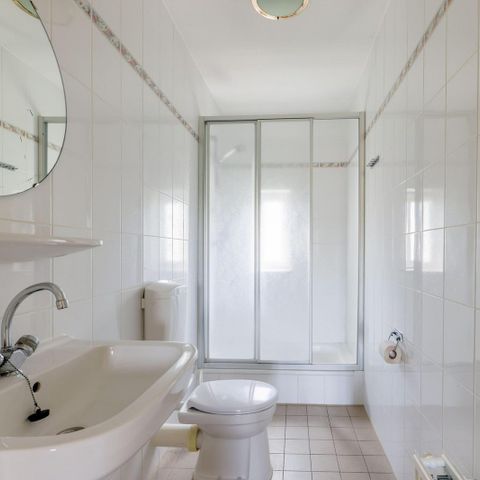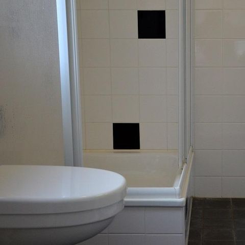 - La salle de bains avec ascenseur se trouve au rez-de-chaussée. La salle de bains est équipée d'une baignoire avec douche spacieuse séparée et d'un brancard de douche (longueur 170 cm). Les toilettes sont équipées de supports. Il y a également une chaise de douche.